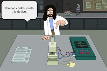 I really liked your cartoon-y art style! The scientist reminds me of another scientist somewhere else, although that other scientist is much more meaner and cynical! Nice work!